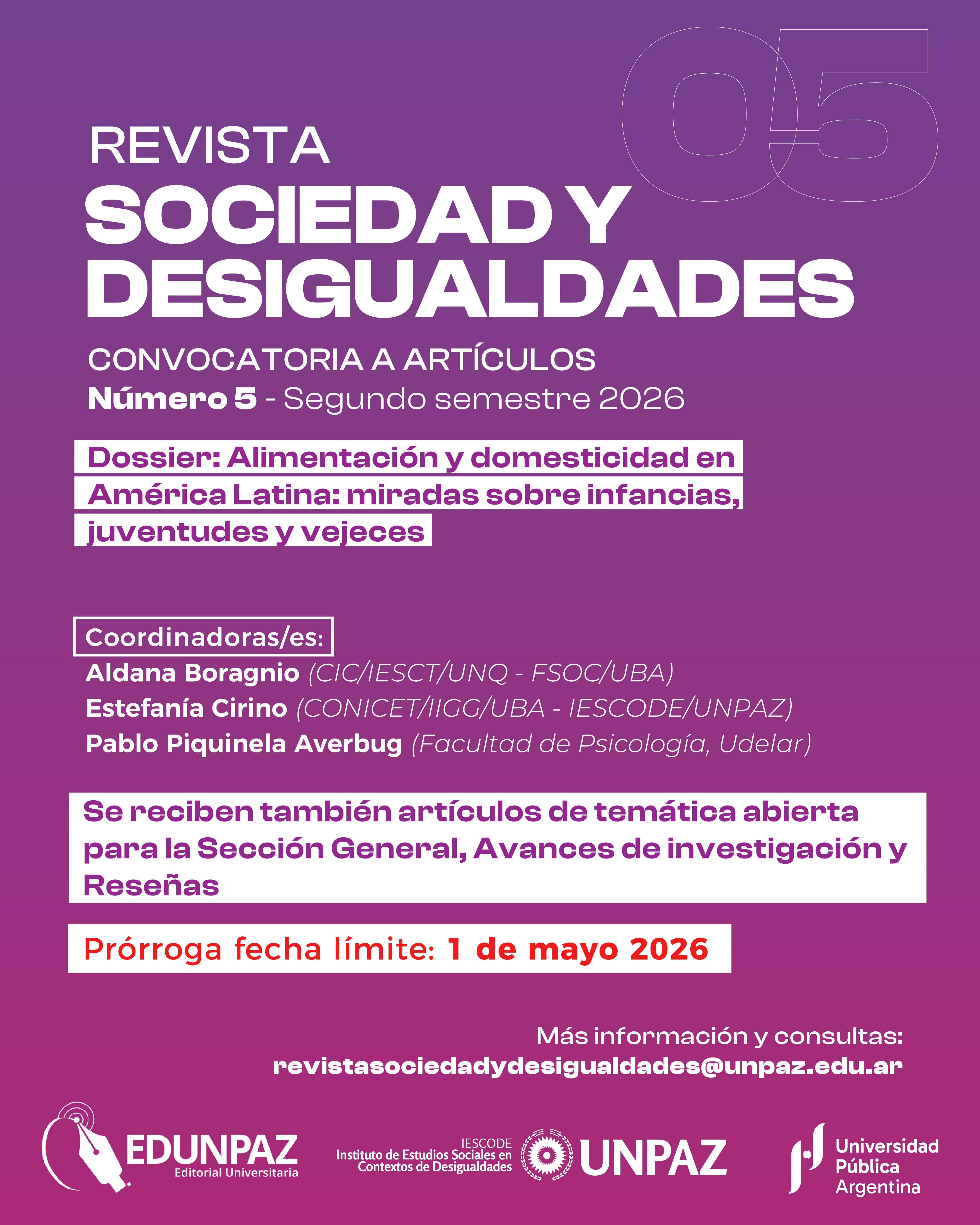 Convocatoria a la presentación de artículos Revista Sociedad y Desigualdades Nº 5