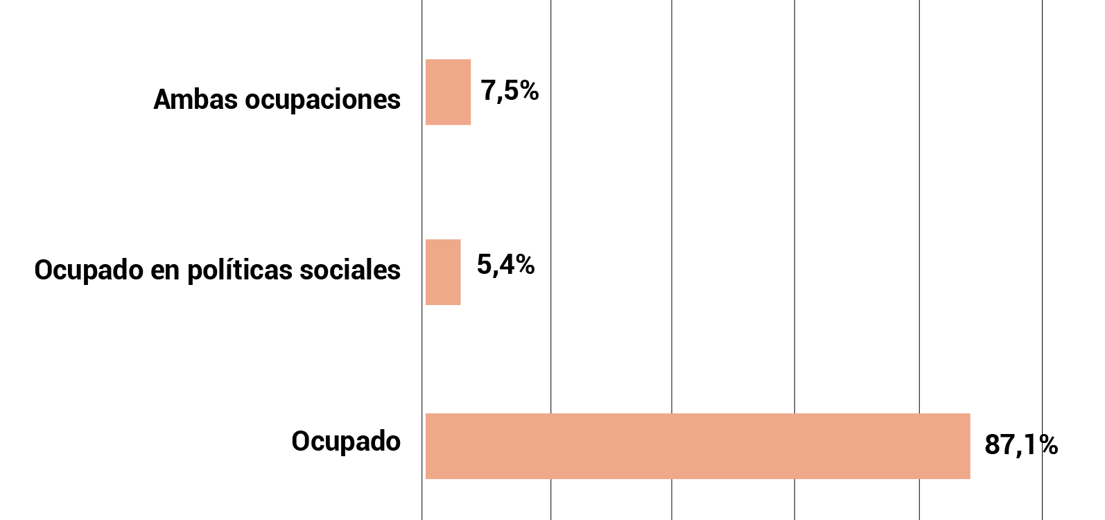 - Ocupados en políticas sociales: corresponde a quienes responden que no a la pregunta sobre si trabaja actualmente y sí a la de si recibe una política social de transferencias monetarias por la que deba hacer alguna contraprestación. Sus ingresos provienen exclusivamente de transferencias monetarias estatales.6