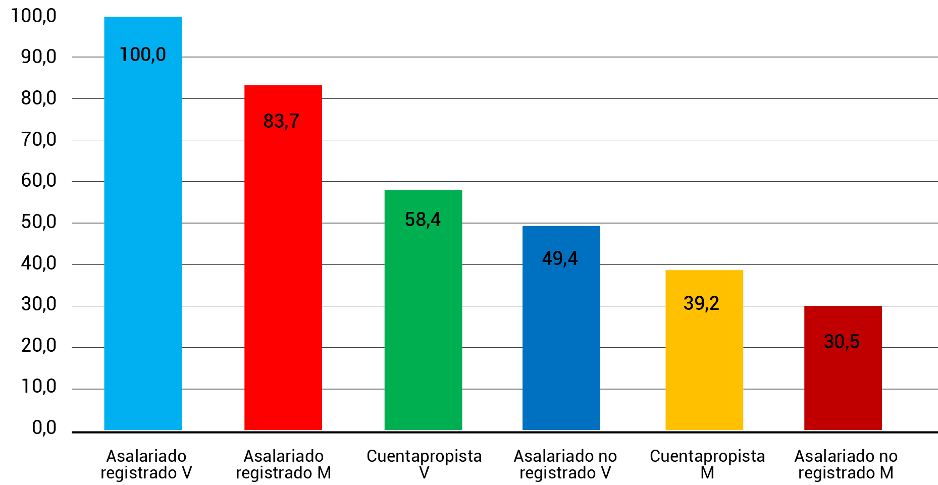 | Asalariadas/os registradas/os | Asalariadas/os no registrados/as | Trabajadoras/es cuenta propia | |